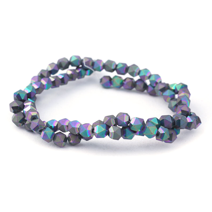 6mm Metallic Rainbow Matte Star Cut Glass Beads