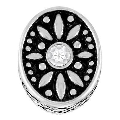 10x11mm clear stones sonnet slider charm. These slide charms work with 1 strand of 5mm flat leather or 2 strands of 2mm round leather. Mix and match to create easy and stylish bracelets! Rhodium plated.