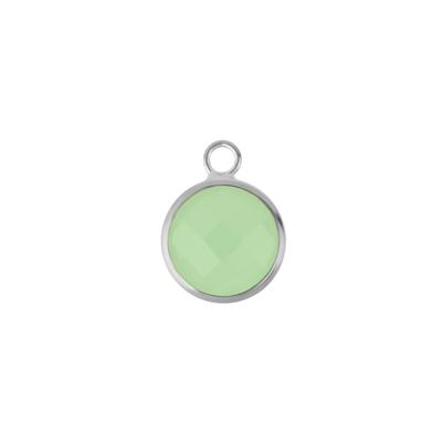10x10mm round mint green faceted glass charm with silver plating with a loop at the top. This charm is made to dangle from the attached loop. Great to use as a wine glass charm or on an expandable bracelet.