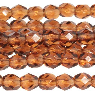 6mm Smoky Topaz Czech Glass Fire Polish Beads. The area now known as the Czech Republic has been a leader in the glass industry since the Middle Ages. Factories in the Czech Republic continue to produce the highest-quality and most innovative glass beads. Czech Glass can be easily distinguished from lower quality glass produced elsewhere. This difference is most easily observed in the consistency, quality and variety of color and finish, as well as the consistency and quality of cut and shape. The faceted round beads commonly known as "Fire Polish" are machine cut and then slightly melted to create smoother edges. Lead Free. Approximately 25 beads per strand.