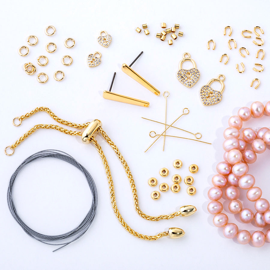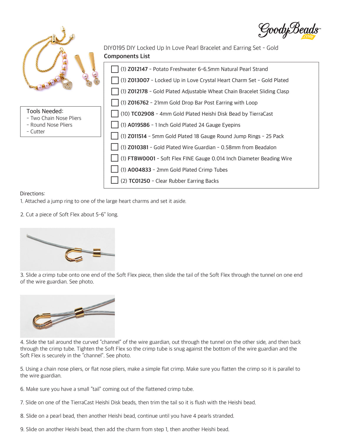 INSTRUCTIONS for DIY Locked Up In Love Pearl Bracelet and Earring Set - Gold
