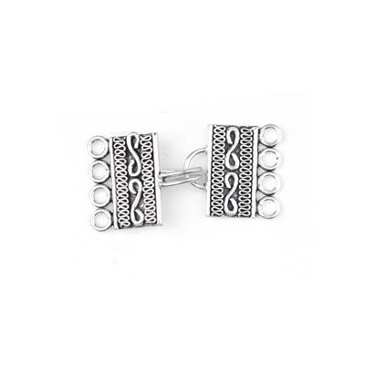 45mm Antique Silver Plated Bali Style Rectangle Beaded 4 Hole Connector Clasp