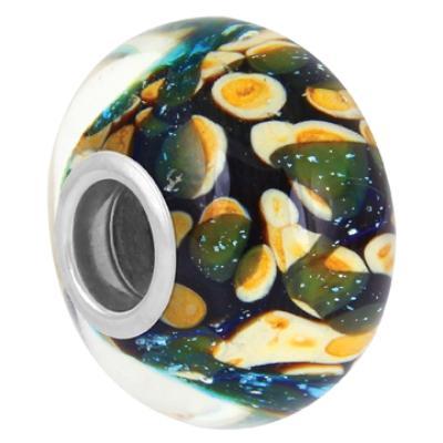 12x20mm rondelle shaped large hole bead. A great statement piece for a necklace or bracelet! This high quality, hand-blown bead fits perfectly on all of the popular brand name chains as well as our very own interchangeable bracelets, necklaces and bangles too. This bead's solid, one piece, core is silver plated over copper. Sold 2 per pack.